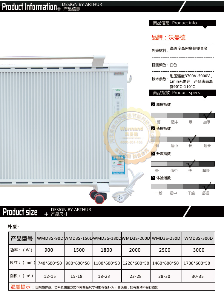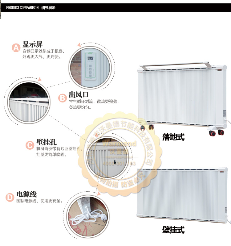 沃曼德碳晶電曖器,分為壁掛式、地暖式,功率從900-1500W,造型美觀大方、結(jié)構(gòu)堅(jiān)固耐用,